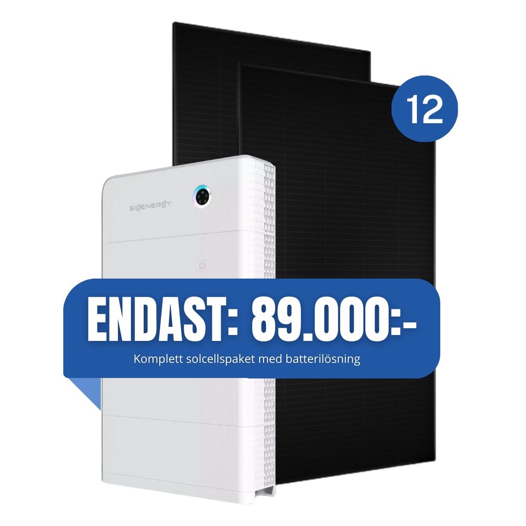12 st 500W helsvarta solpaneler (ca 6000W installerad effekt).